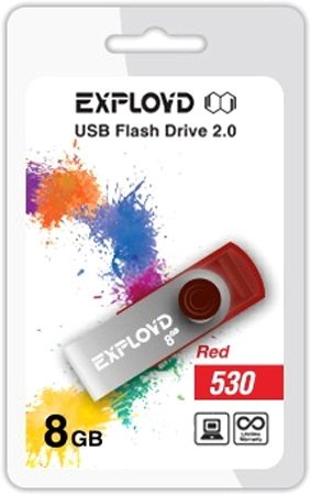 8 ГБ, USB 2.0 Type-A, раскладной корпус, металл/пластик, скорость 20/10 МБ/с, цвет красный