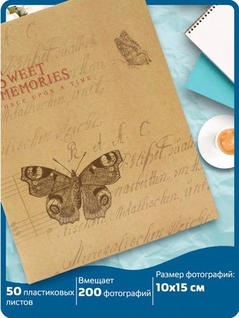 универсальный, 200 фотографий, 10x15 см, твердый переплет, с кармашками, рисунок/бежевый