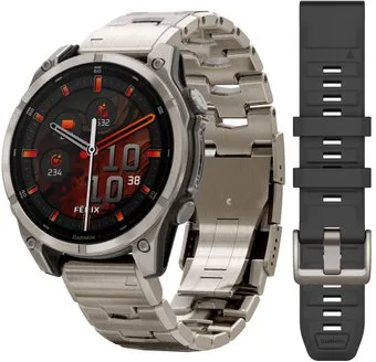 синхронизация с Android/iOS, экран AMOLED 1.4", поддержка SIM-карты: нет, пульсометр, измерение кислорода в крови, GPS, корпус: пластик/металл (титан), ремешок: металл (титан)
