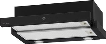 конструкция телескопическая, монтаж для встраивания, ширина 59.6 см, управление сенсорное, производительность вытяжки 740 м³/ч, производительность мотора 1300 м³/ч, цвет черный
