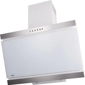 конструкция наклонная, монтаж настенный, ширина 60 см, управление механическое/кнопочное, производительность мотора 850 м³/ч, цвет белый/нержавеющая сталь