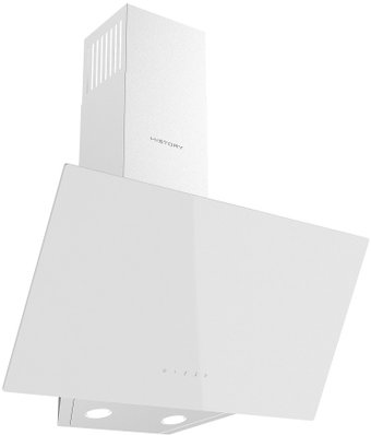 конструкция наклонная, монтаж настенный, ширина 59.5 см, управление сенсорное, производительность вытяжки 1050 м³/ч, цвет белый
